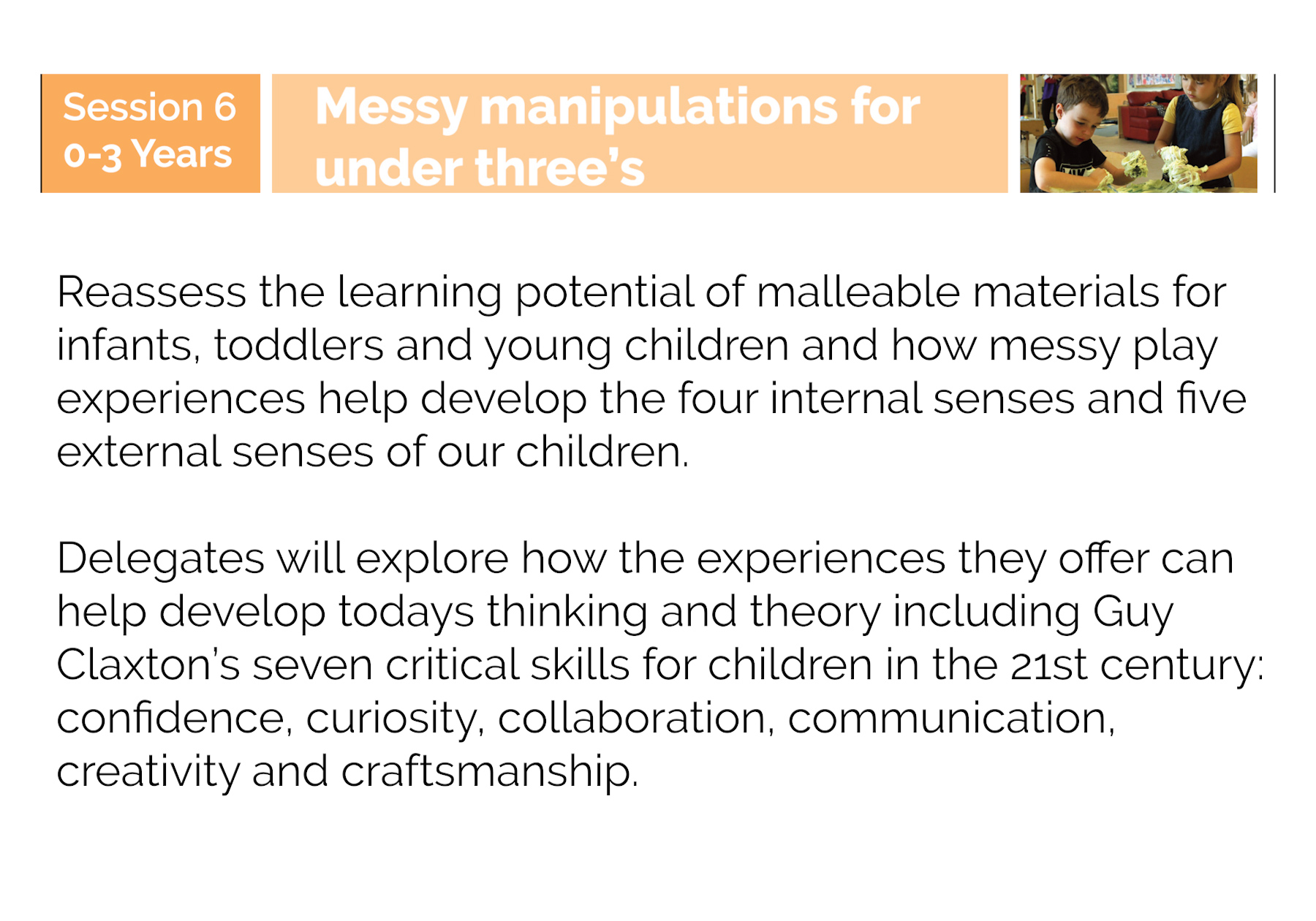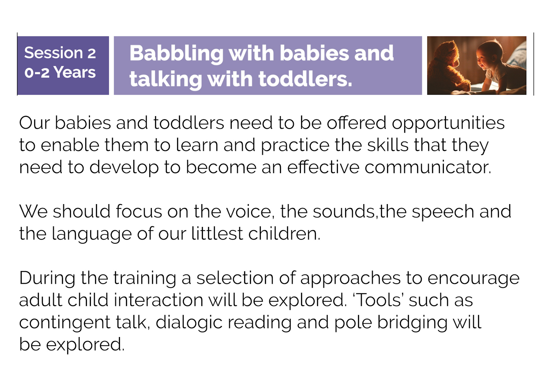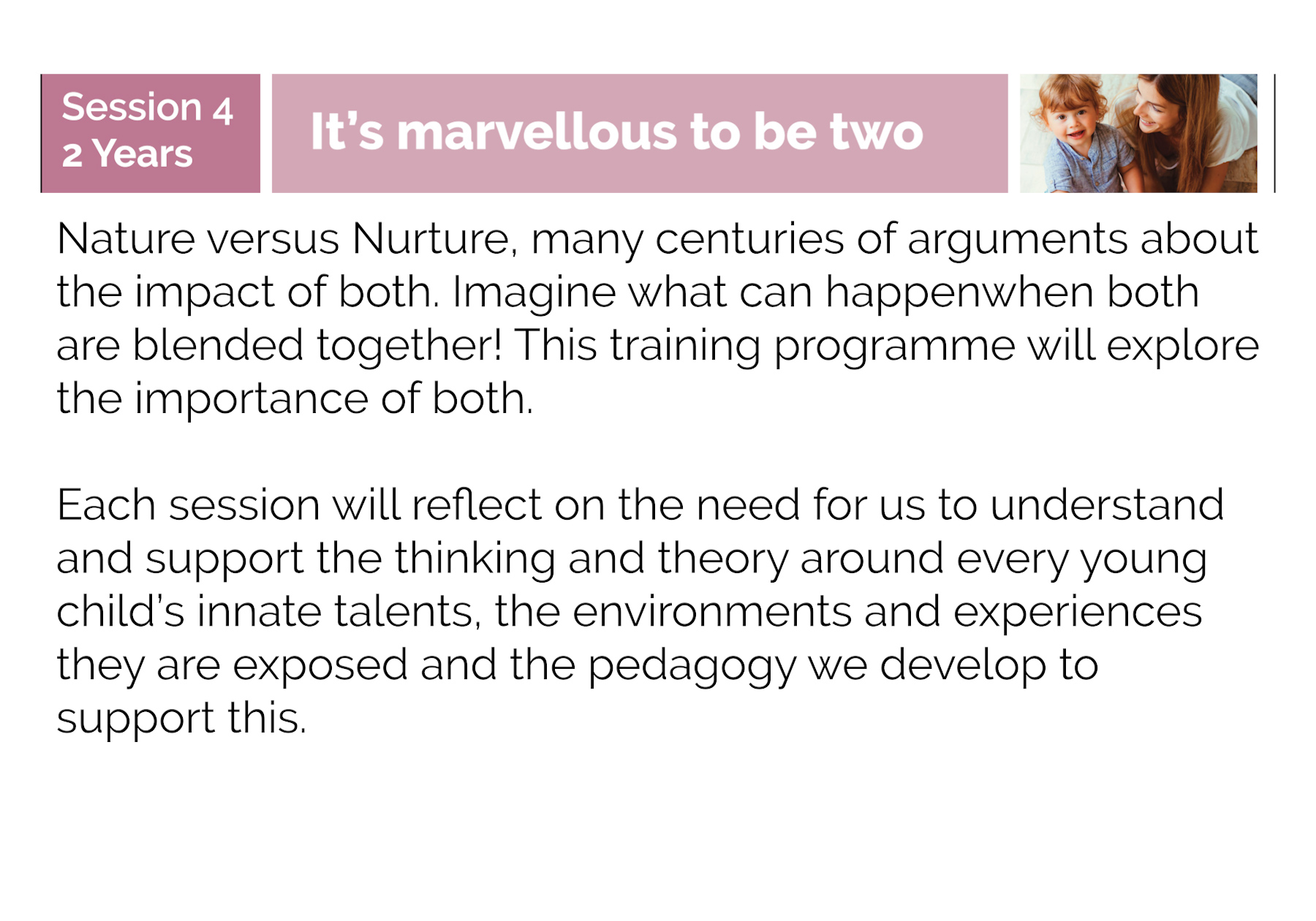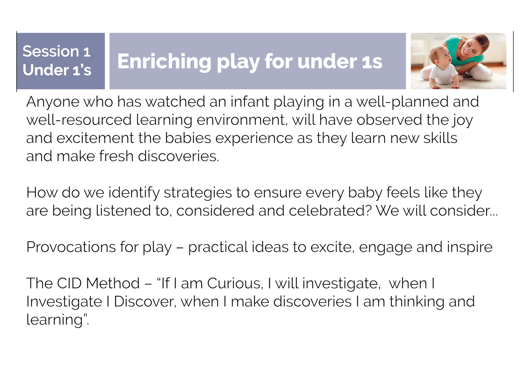 A unique training opportunity. 8 masterclasses for staff working with babies, toddlers and our youngest children.