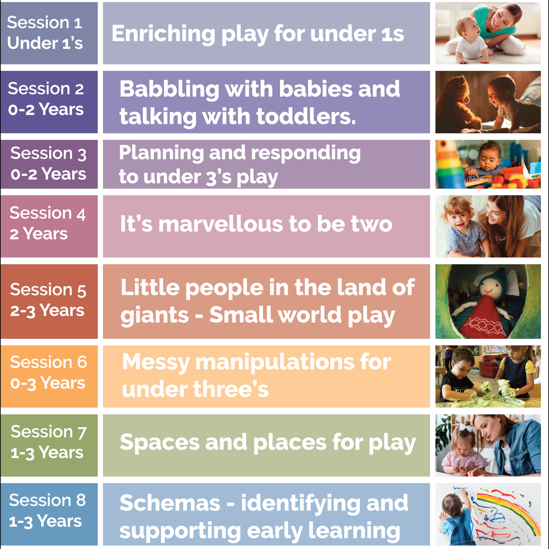 These 8 ninety minute sessions each focus in the youngest children in our settings from the Under 1’s to the 3-5 year olds.