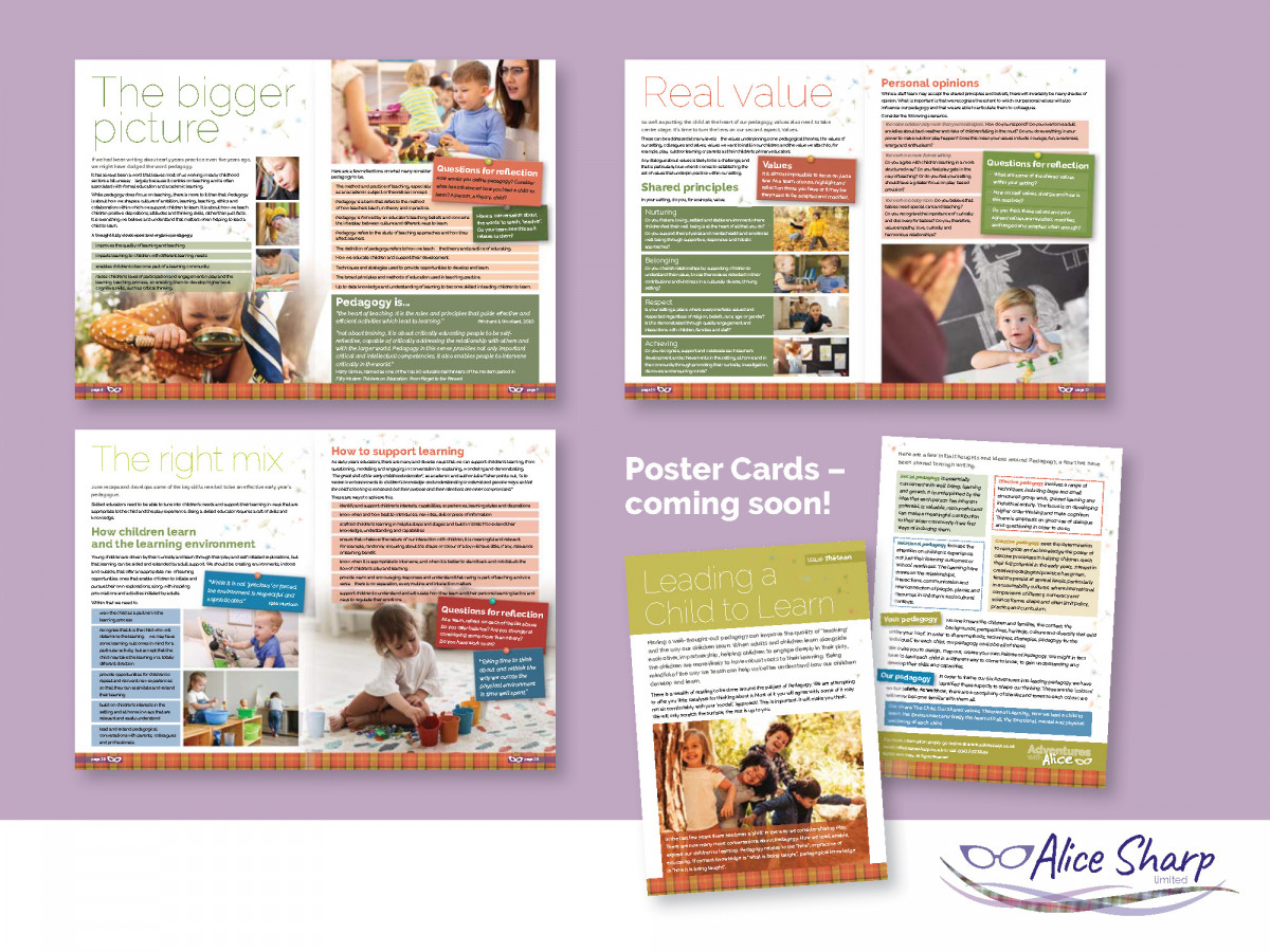 When you join the Adventures programme, you will have access to inspiring films bringing early learning to life. You will have a series of magazines bursting with thinking and theory, sharing the latest on child development and learning as well as a collection of amazing practical play ideas on our inspiring provocation cards. Each Adventure includes Alice sharing theory, thinking and practice through films, magazines, poster activity cards and reflective tasks.