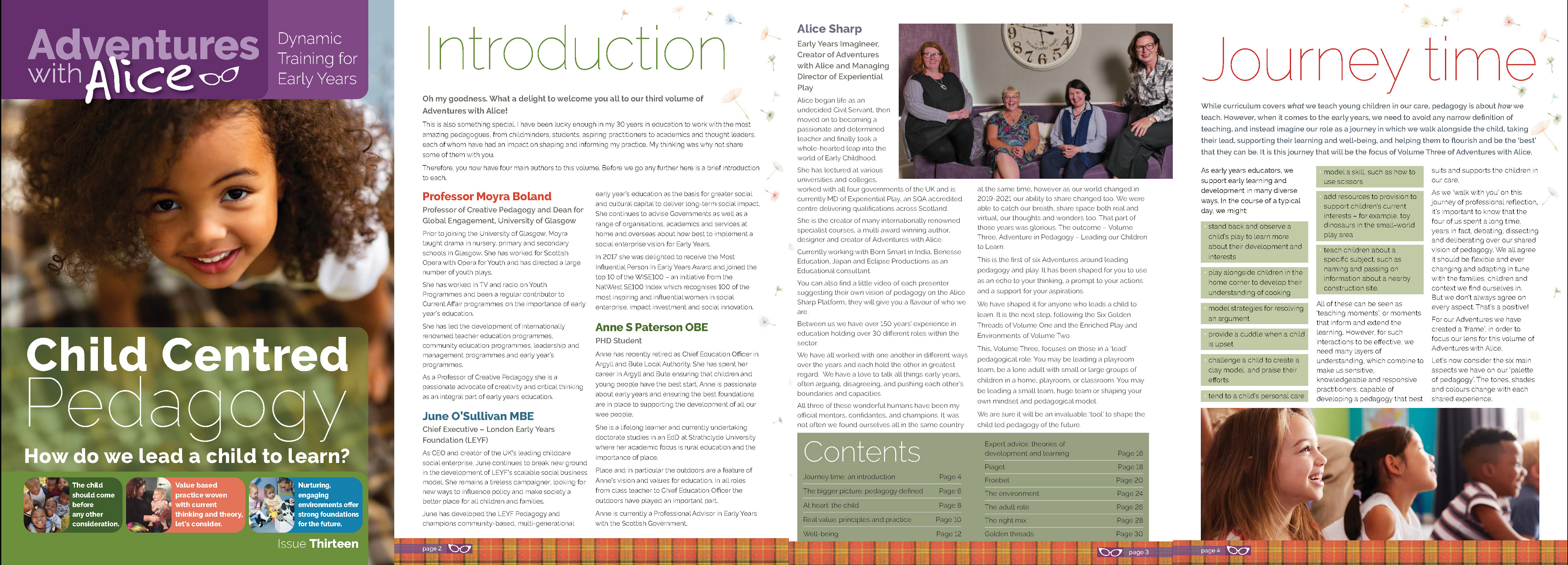 There is investigation and discussion on the environment for a child to learn as well as the values agreed within the setting and does this meet the values of staff and parents. And as with all Adventures with Alice, there are links to theory, curricula and current thinking.