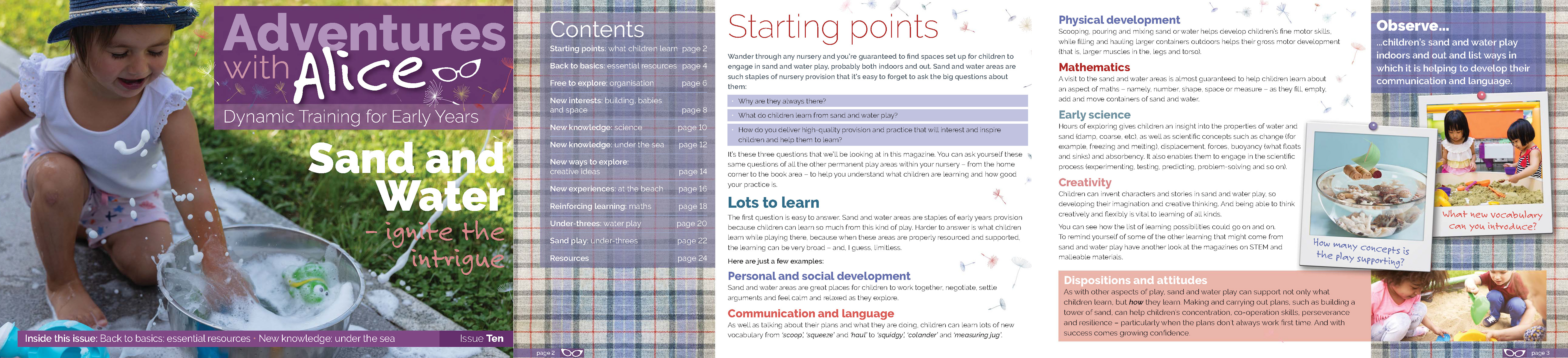 Wander through any nursery and you’re guaranteed to find spaces set up for children to engage in sand and water play, probably both indoors and out. Sand and water areas are such staples of nursery provision that it’s easy to forget to ask the big questions about them: Why are they always there? What do children learn from sand and water play? How do we excite and ignite sparks for learning in these areas? This adventure is all about taking our continuous provision and enriching and enhancing it. We go back to basics in order to plan how we might introduce new thinking, reinforce skills and support or children progression and understanding of sand and water.
