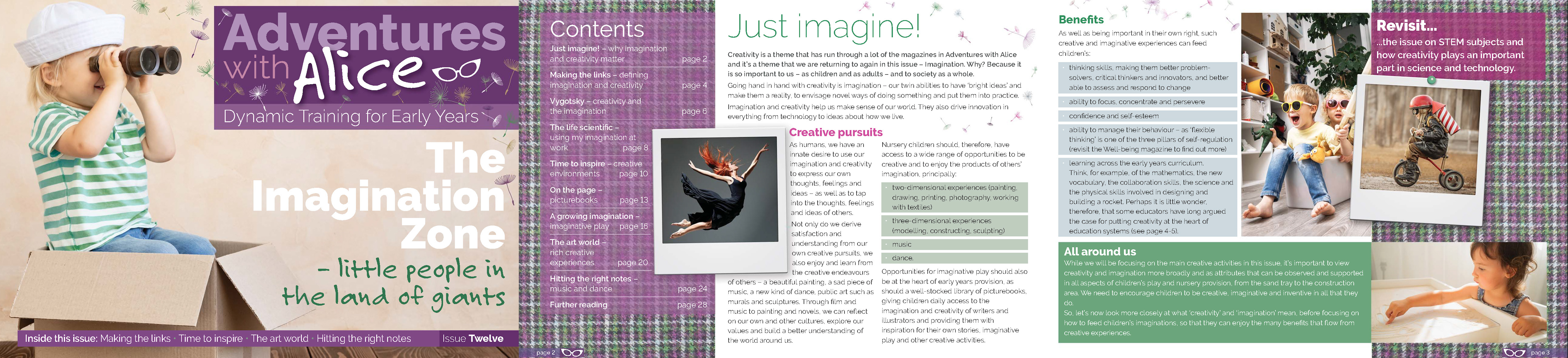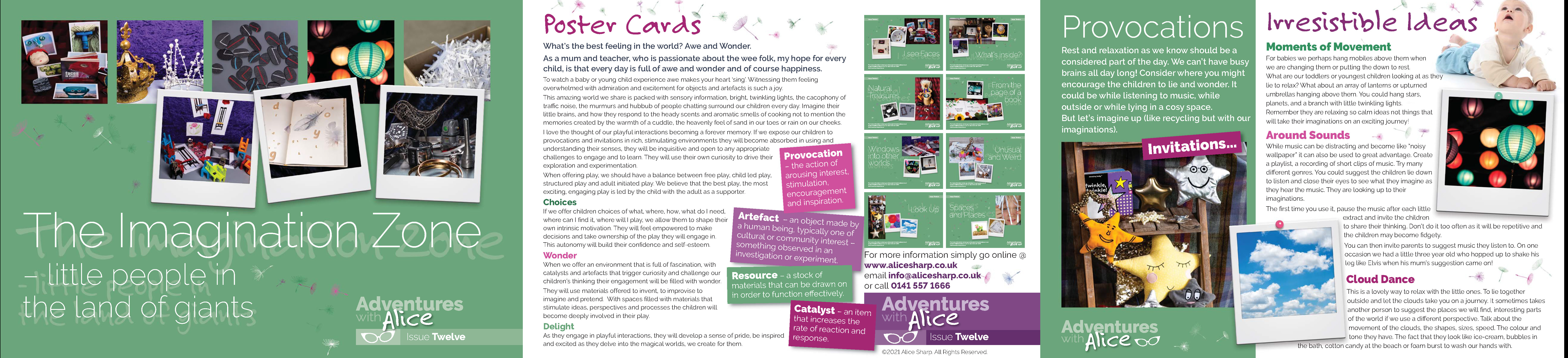 Every child’s imagination is captured by an exciting image, story or situation. Setting up ‘zones’ for learning which stimulate children’s thinking and engagement helps children make sense of the learning they are involved in. As they meet new inhabitants or discover new artefacts and resources children are eager to investigate, discuss and consider these new experiences. This adventure will challenge our thinking around how the mind works, what is imagination, how is it linked to memory? Anyone who has watched children playing in a well-resourced ‘imagination zone’ with involved adults will have observed the joy and excitement the children experience as they make fresh discoveries. We suggest a plethora of ways to extend your thinking.